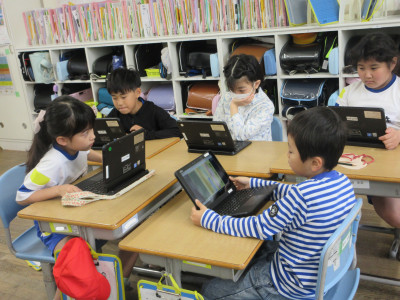 今日は、先生たちの会があるため、いつもより早い1時間目のスタートでしたが、1年生はいつもどおりにしっかり学習をスタートさせていました。